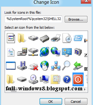 OK then, right-click the shortcut (Shutdown Computer) and click on Properties. In the Shortcut tab, click on Change Icon, click OK if a message box appears, select the icon you like, click OK, Apply and OK again.Now the Shutdown shortcut has a better look.